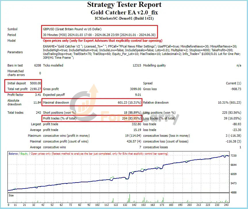 The test outcomes for Gold Catcher EA indicate vast profit opportunities ahead. The EA not only performs admirably with GOLD but also shows that currency pairs can reach the anticipated performance.